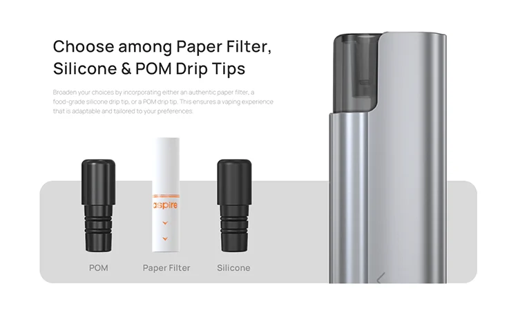 Auch ohne Display ist der Vilter Max nicht starr: Der seitliche Airflow erlaubt dir, den Zug nach deinem Stil zu formen – von zigarettennah bis etwas offener. Dazu kommt das Vilter-Ökosystem: kompatibel mit verschiedenen Vilter-Drip-Tips (Silikon, POM) und den beliebten Papierfiltern, die den Zug besonders „cig-like“ machen.