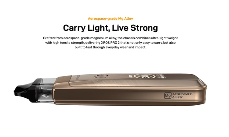 Mit seinem Körper aus Magnesiumlegierung in Luftfahrtqualität bringt der Xros Pro 2 gerade einmal 65 g auf die Waage und sieht dabei verdammt gut aus. Seine klaren Linien und das stylische Format von 125,6 × 25,7 × 18,4 mm machen ihn zu einer perfekten Alltags-E-Zigarette.