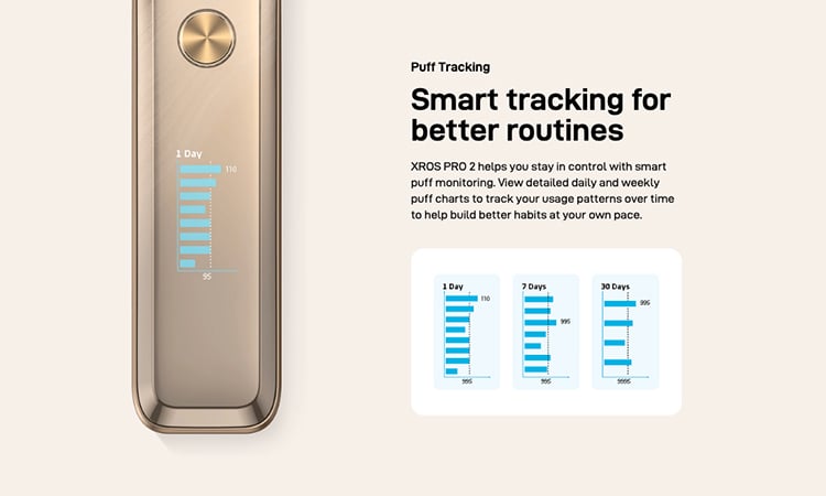 Du willst wissen, wie oft du am Tag ziehst? Der Xros Pro 2 zeigt’s dir – mit einem cleveren Puff-Zähler, der deinen Dampfverbrauch trackt. Ideal für alle, die’s genau wissen (oder sich selbst bremsen) wollen.