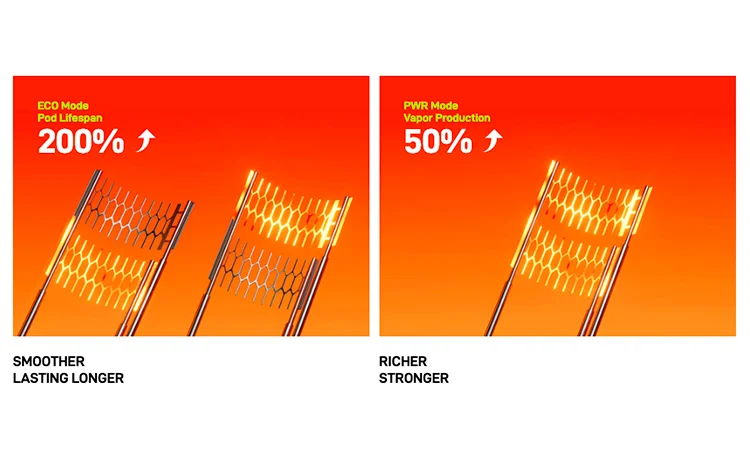 Das Besondere: Eine einzige Kartusche nutzt je nach gewähltem Modus (PWR oder ECO) zwei unterschiedliche Leistungsstufen. Mehr Flexibilität, ohne Pod-Wechsel. Genau so mögen wir das bei RedVape.